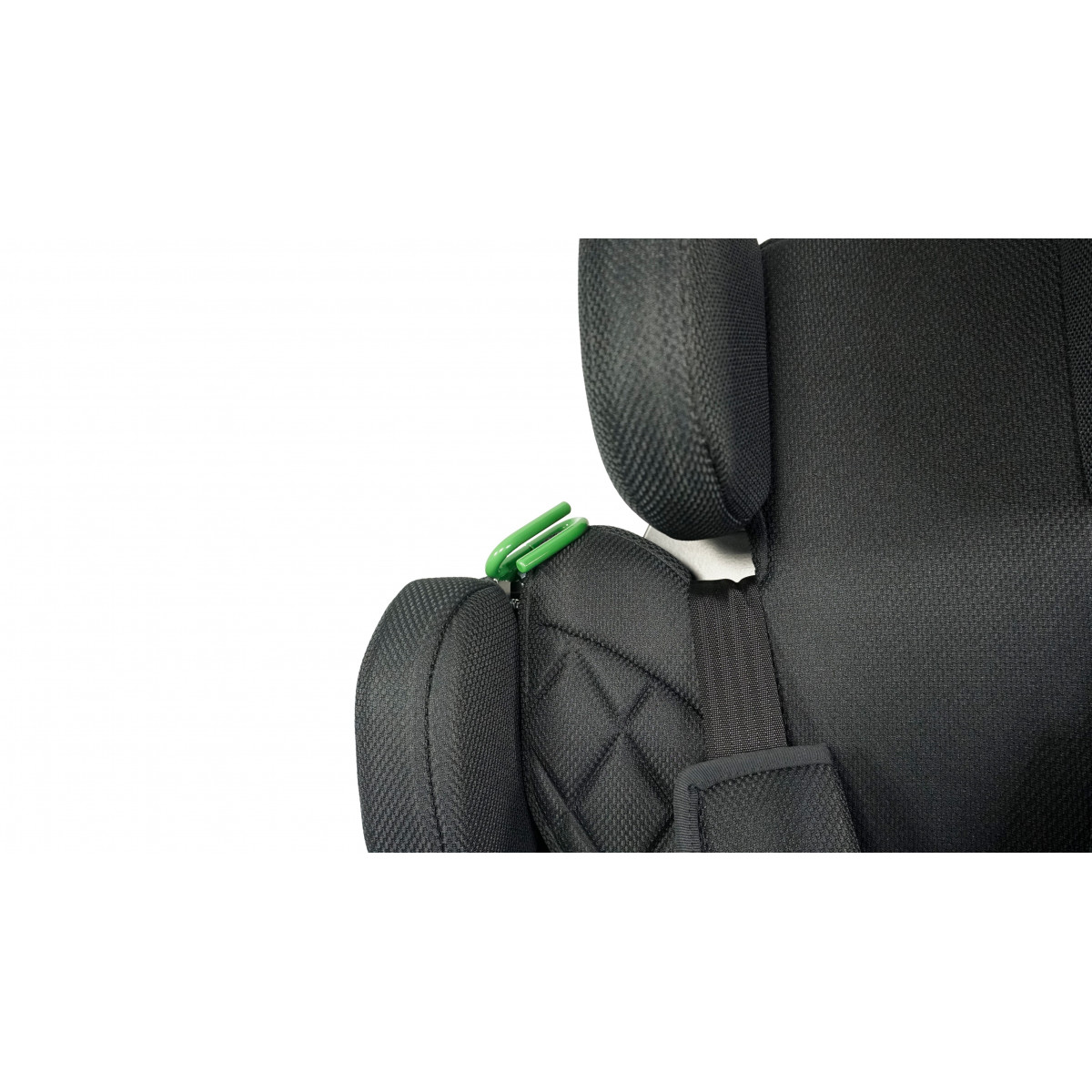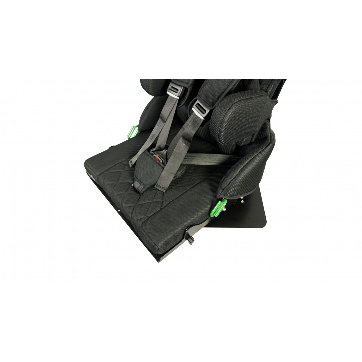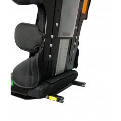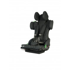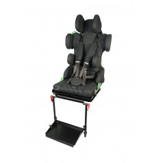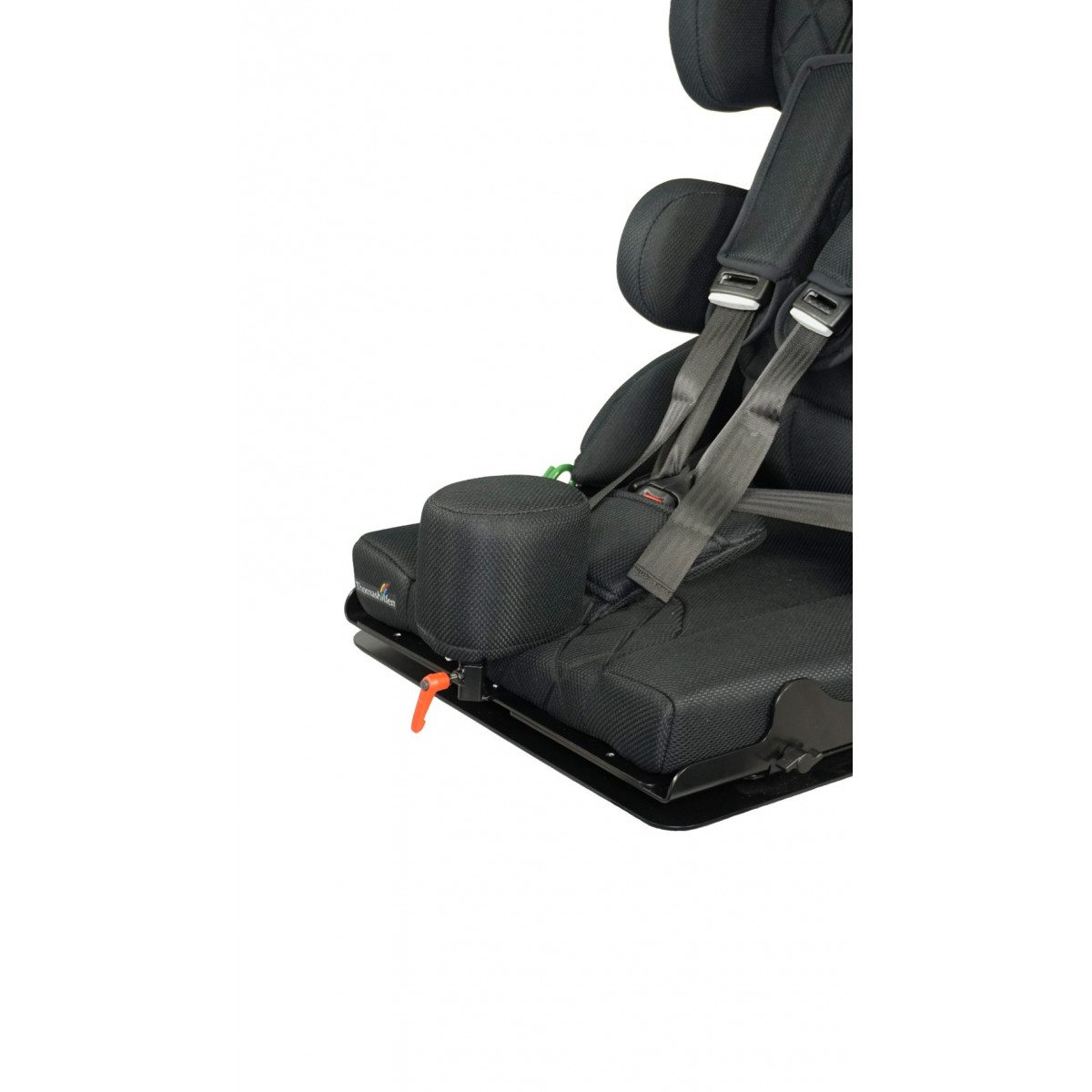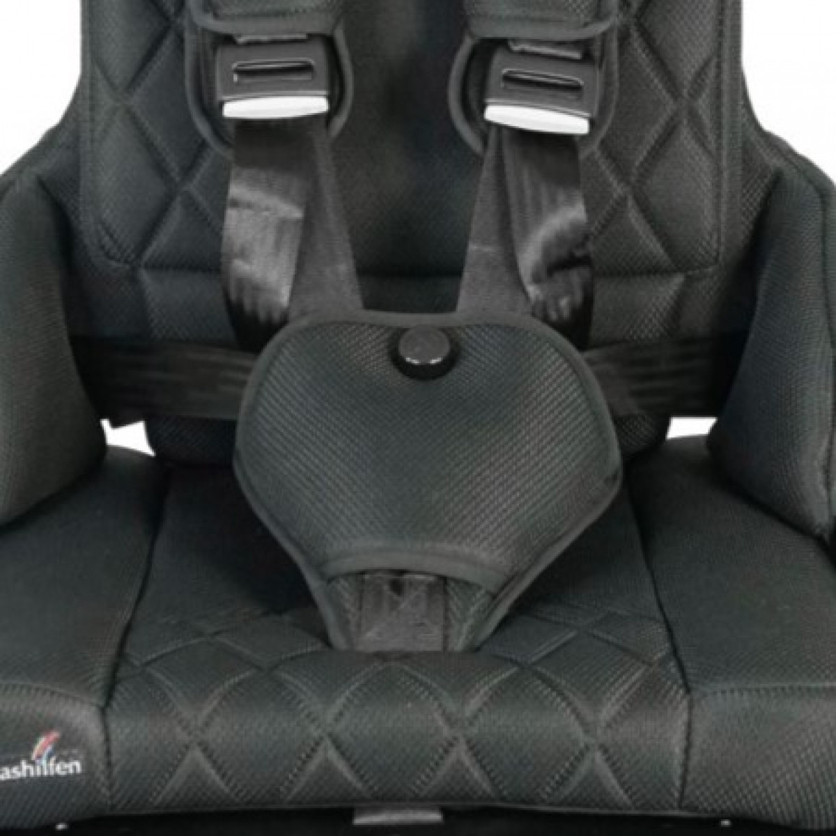 Для правильной поддержки предусмотрены плавная регулировка высоты спинки, анатомичный подголовник и опоры для бёдер. Важной особенностью модели являются плечевые поддержки, которые стабилизируют положение ребёнка и предотвращают излишние наклоны во время движения. Дополнительно могут устанавливаться боковые поддержки с откидным механизмом, усиливающие фиксацию туловища.