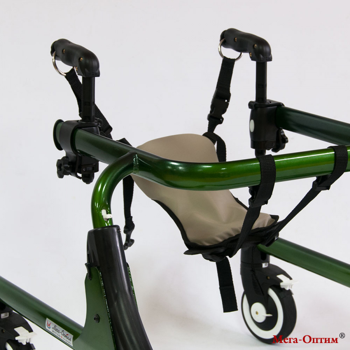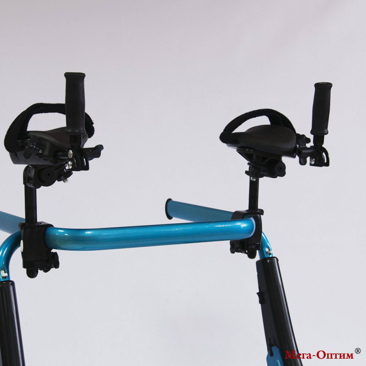 Опоры-ходунки Мега имеют целый ряд специальных приспособлений, которые обеспечивают надёжную фиксацию различных частей тела, что крайне важно для достижения правильного положения во время занятий. Все элементы крепления легко устанавливаются и снимаются, что позволяет адаптировать конструкцию ходунков в зависимости от индивидуальных потребностей конкретного пользователя.