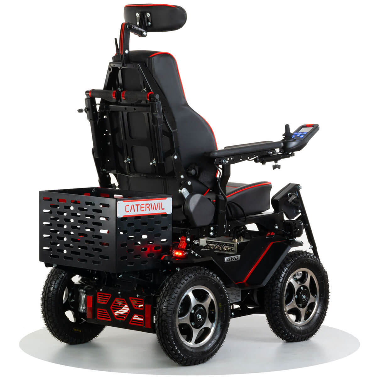 Данная опция устанавливается только на модель Caterwil Ultra 4WD. Опция требует специальных креплений на раме коляски, устанавливается производителем. Крепится на болтовом соединении, при необходимости корзину можно открутить