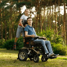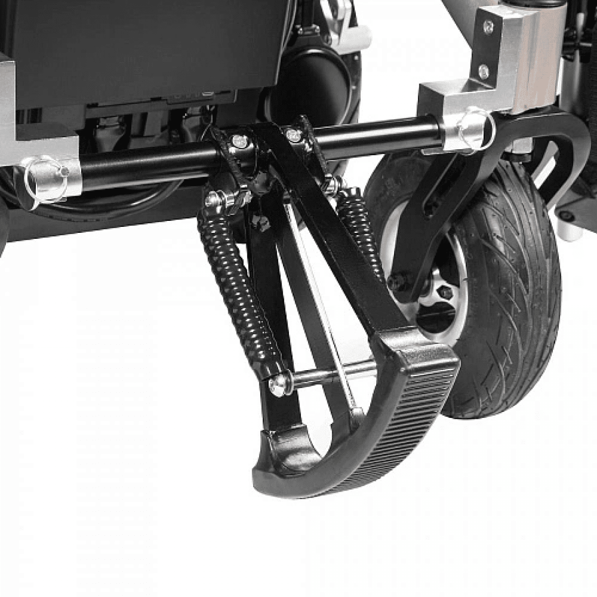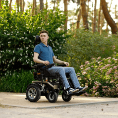 Коляска оснащена уникальным устройством для преодоления препятствий высотой до 10 см. Мощные двигатели, установленные в данной коляске, обеспечивают не только тягу, но и быстрейший набор скорости.