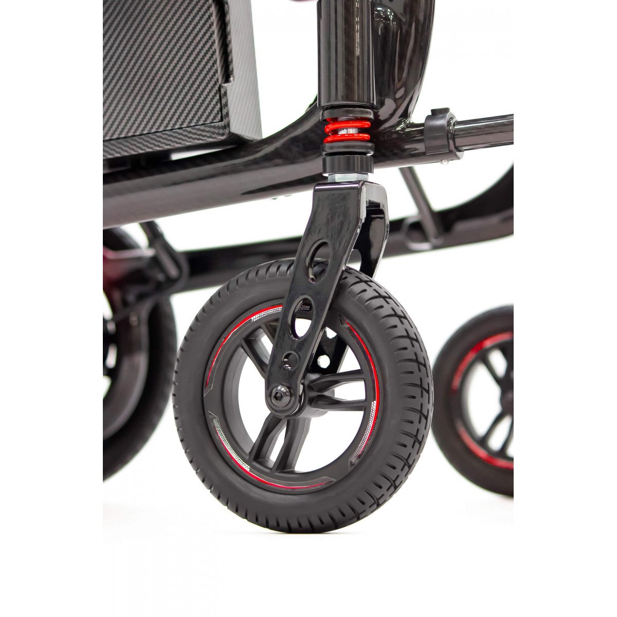 Met Carbonyx 15 (Мет Карбоникс 15) — современная электроколяска с карбоновой рамой, созданная для активных пользователей, которым важны комфорт и мобильность. Вес всего 15 кг делает её одной из самых лёгких в своём классе — коляску можно без усилий сложить, поднять и поместить в багажник автомобиля. Карбоновая конструкция снижает вибрации и повышает устойчивость, обеспечивая мягкий ход и стабильное управление даже на неровной дороге.