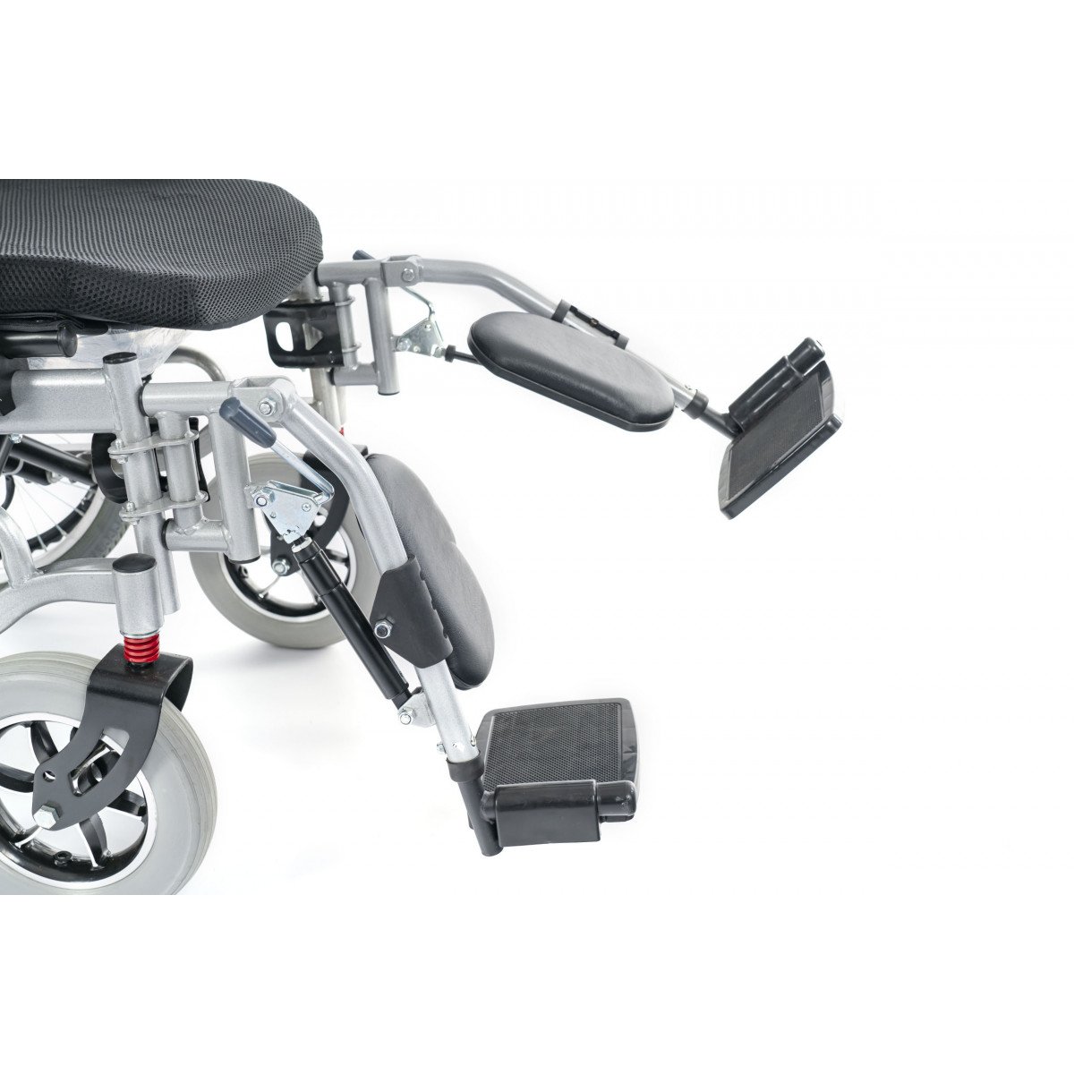 Главная особенность коляски Met Comfort 42 (30 AH) (Мет Комфорт 42 (30 AH)) — это возможность длительного пребывания лёжа или полулежа. Пользователь может самостоятельно откинуть спинку и поднять подножку, чтобы перейти в горизонтальное положение.
