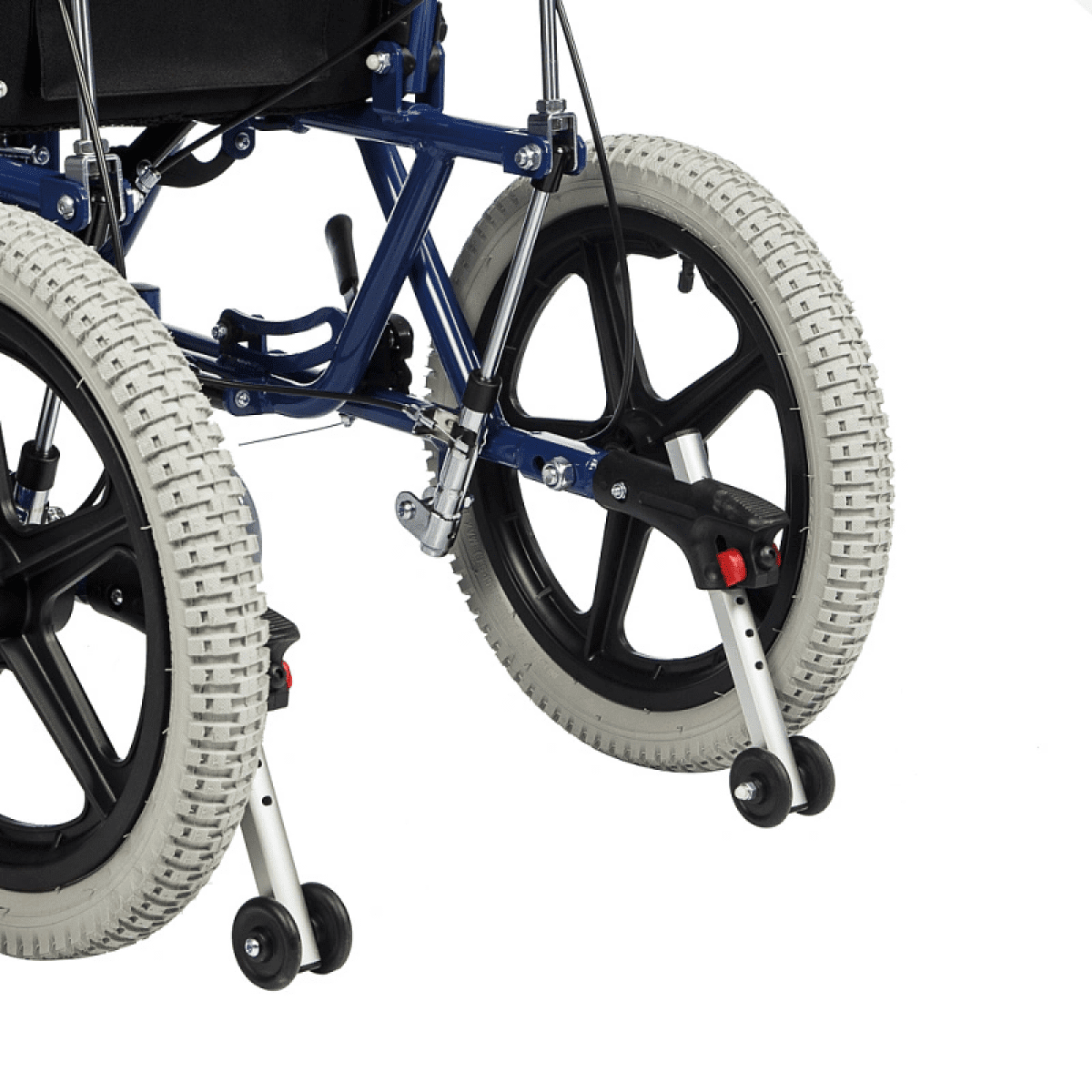 - Съёмные колёсные антиопрокидыватели с упором для сопровождающего лица регулируются по высоте