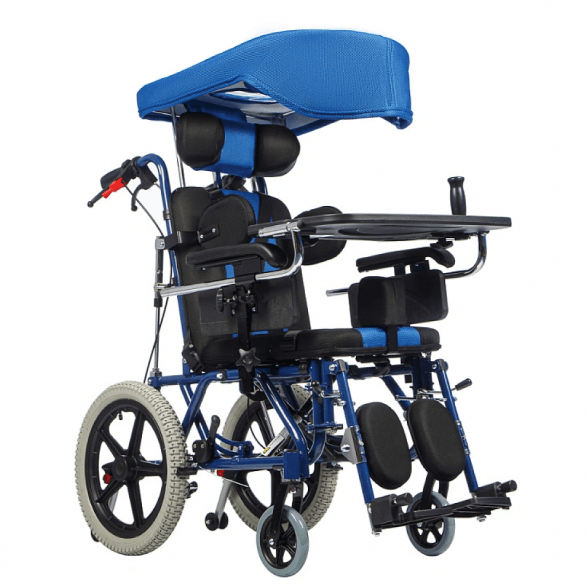 В комплекте с коляской идет съёмный столик, который оснащён антиспастической ручкой. Столик обеспечивает необходимую поддержку верхней части туловища, что способствует общей стабильности и комфортному положению ребёнка. Антиспастическая ручка активно помогает снижать повышенный тонус мышц. Кроме того, в комплект входит съёмный капюшон с прозрачной вставкой, который защищает ребёнка от солнечных лучей и неблагоприятных погодных условий.