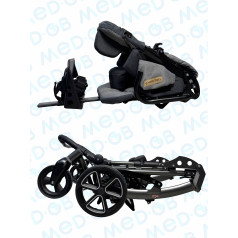Коляска оборудована складной рамой, что придаёт ей компактность – при необходимости её можно поместить даже в небольшой багажник или спрятать в комнате, не снимая сиденья. Рама выполнена из сплошного алюминиевого профиля, образующего центральную ось, на которой установлено сиденье со спинкой и опорная плита.