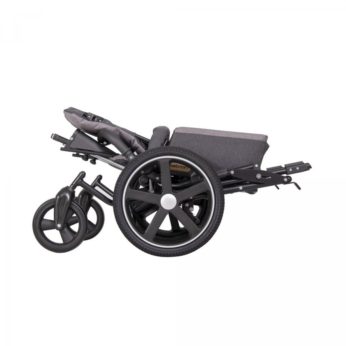 Конструкция коляски включает полностью складную раму, изготовленную из тонкостенных трубок с порошковым напылением. Это не только делает коляску легкой, но и добавляет ей прочности. Армированная рама оптимизирована для использования на ровных поверхностях, а также в условиях, требующих повышенной проходимости.