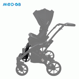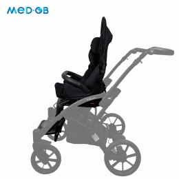 Коляска оснащена анатомическим сиденьем с мягкими вставками и регулируемыми подушками, которые обеспечивают устойчивость и поддержку корпуса. Уникальная функция «колыбель» позволяет синхронно менять угол наклона спинки и сиденья, переходя от активного положения к расслабленному. Надёжные ремни стабилизируют таз и препятствуют смещению во время движения.