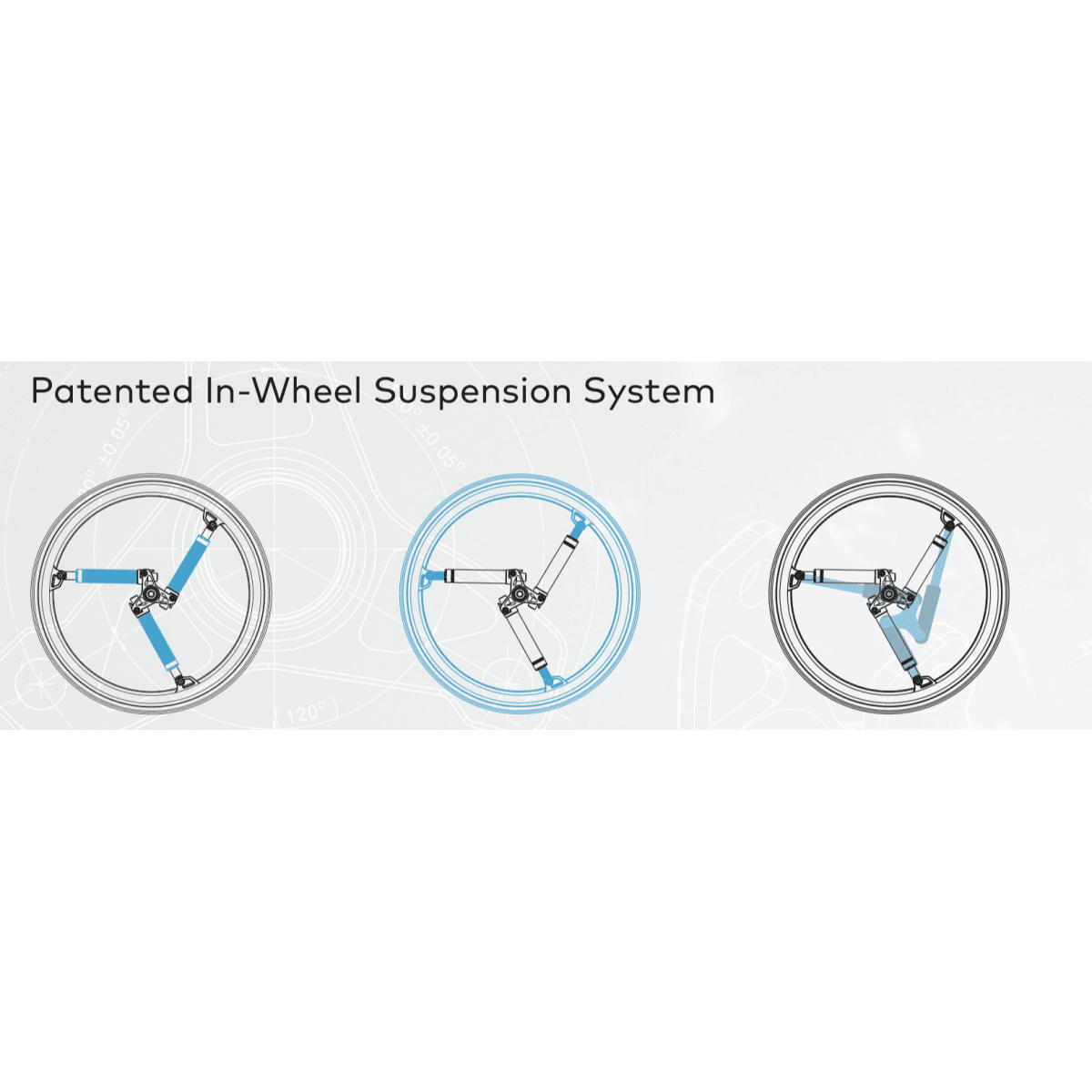 Секрет технологии — во встроенной системе поглощения ударов, которая активируется только тогда, когда это действительно нужно. На ровной дороге колёса ведут себя как обычные, а при наезде на неровности берут удар на себя, уменьшая вибрации и толчки. Центральная ось остаётся стабильной, поэтому лишние колебания не передаются на раму коляски и не ощущаются пользователем.