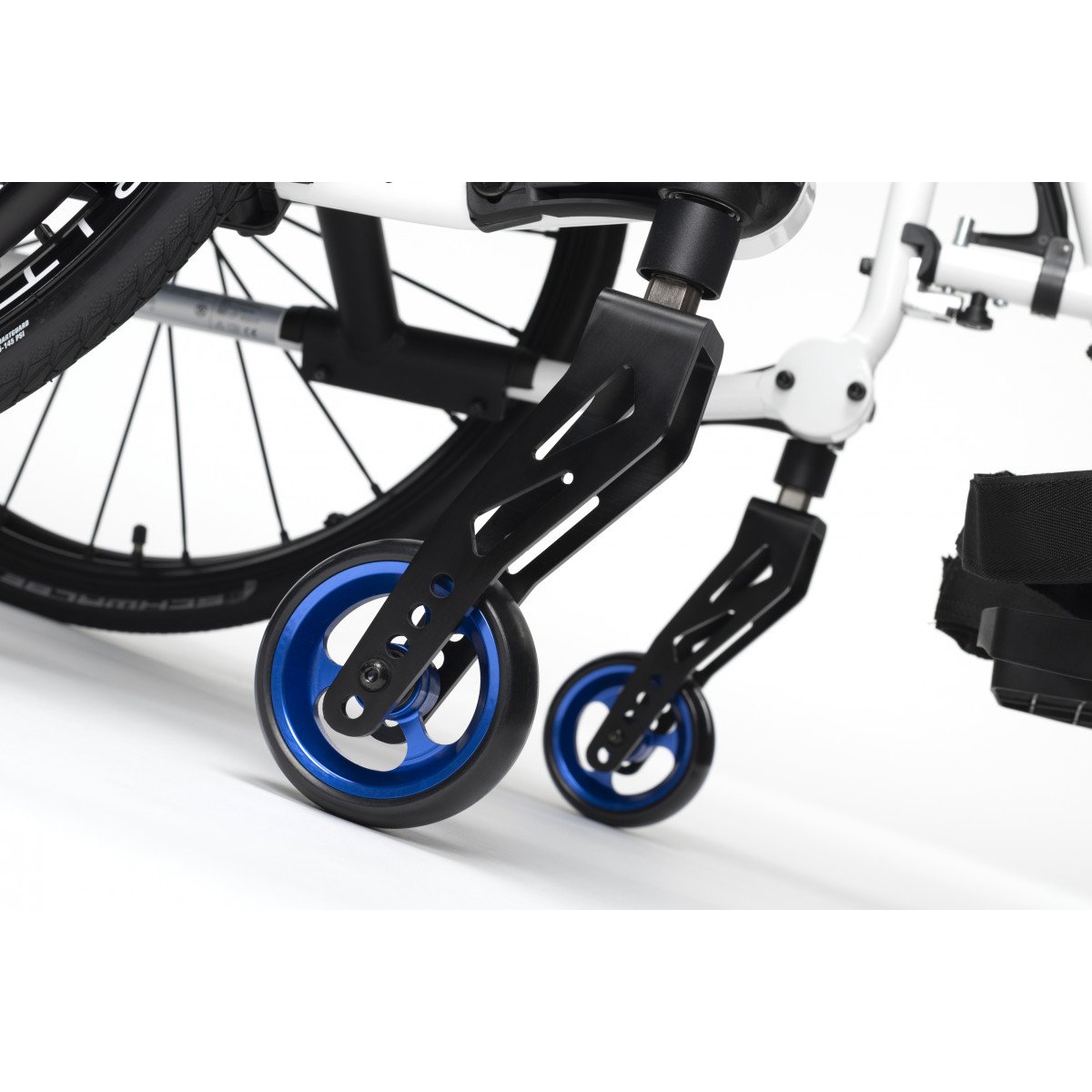 Одной из ключевых особенностей является наличие специального адаптера для задних колёс, который позволяет регулировать положение осей, тем самым уменьшая нагрузку на передние колёса и повышая манёвренность. Невысокая спинка способствует лёгкости поворотов корпуса, что обеспечивает свободу движений рук, позволяя без помех отводить их назад при вращении ручек.