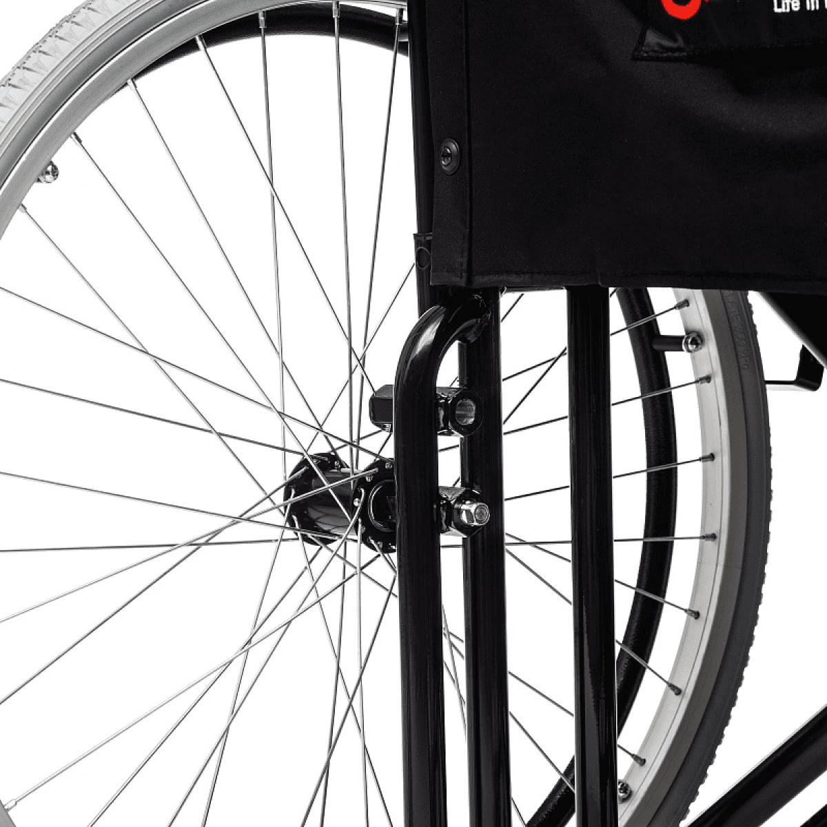 - Быстросъёмные задние колёса с кнопочной фиксацией