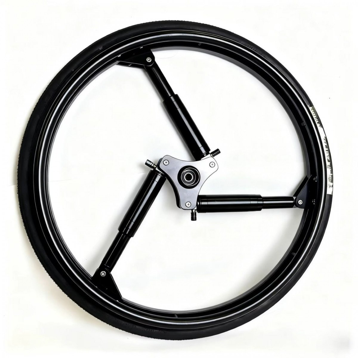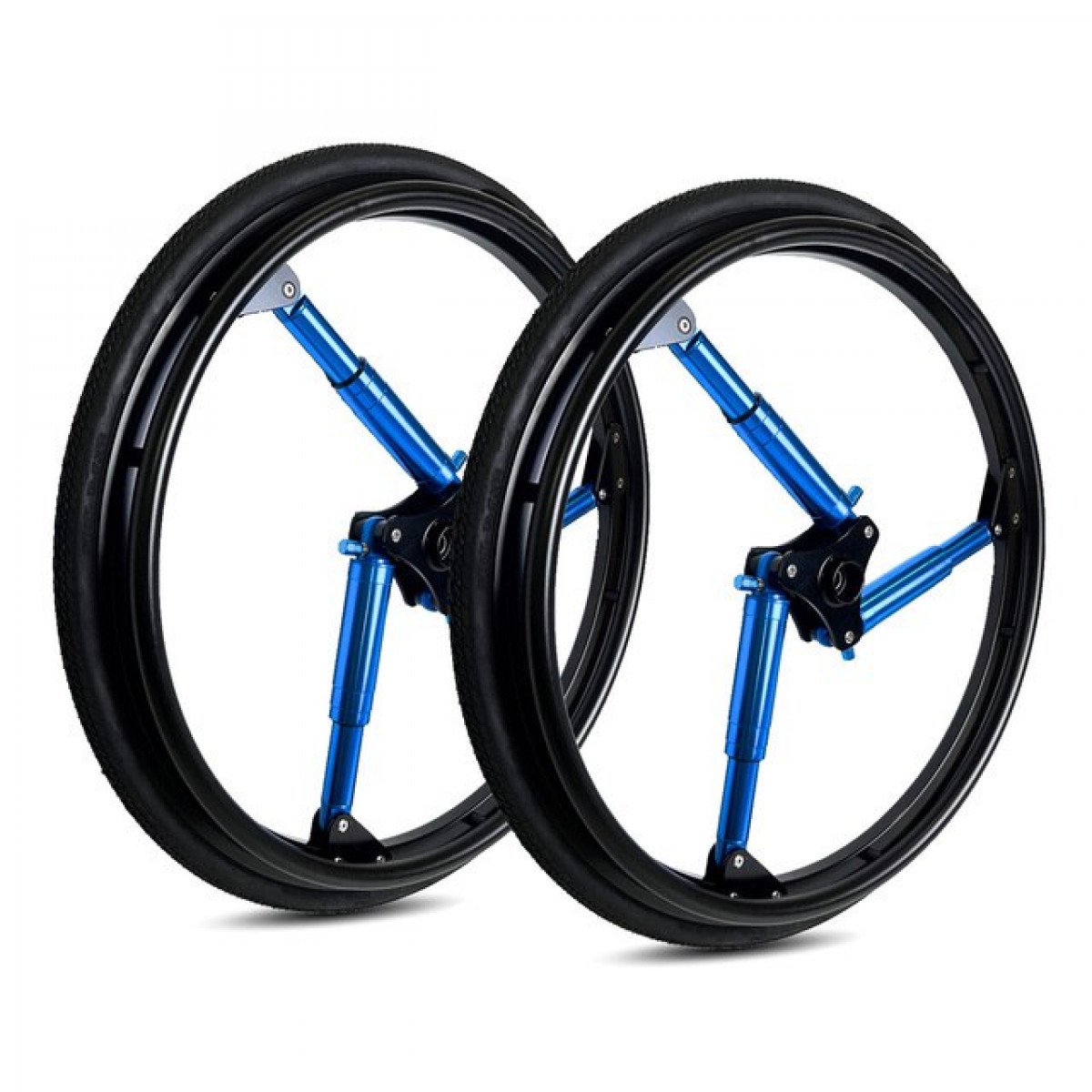 Внутри колёс скрыта инновационная система амортизации, способная поглощать до 50 % ударной нагрузки при заезде на бордюры, ступени и другие препятствия. При этом на ровной дороге колёса работают как обычные, без лишнего сопротивления. Особая конструкция с тремя амортизирующими элементами гасит вибрации внутри колеса, не передавая их на раму коляски.