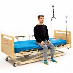 Кровать оснащена электрическими регулировками спины и ног, что помогает подобрать удобное положение, в том числе положение Фаулера — полусидя или полулёжа. Такое расположение тела улучшает дыхание, снижает нагрузку на позвоночник, облегчает общение и уход. Съёмные изголовье и изножье, а также складывающиеся боковые ограждения обеспечивают безопасность и удобство при ежедневном использовании.