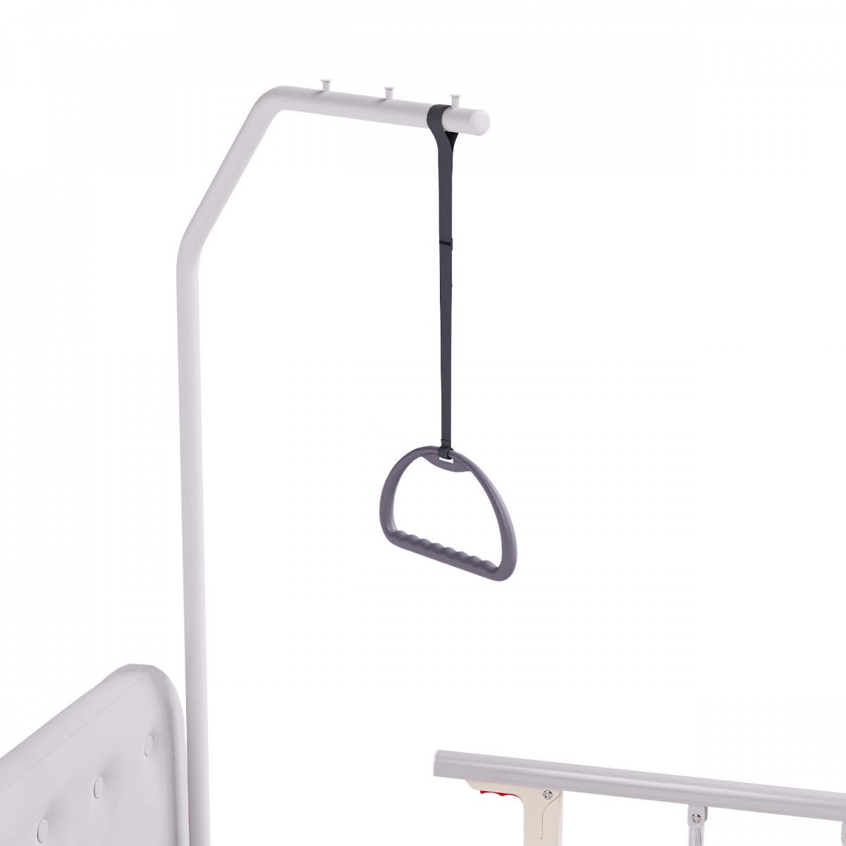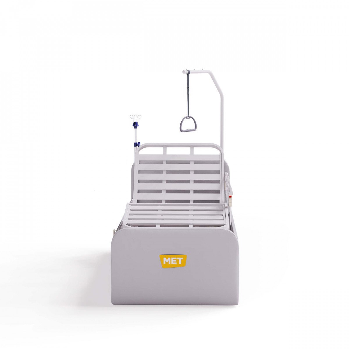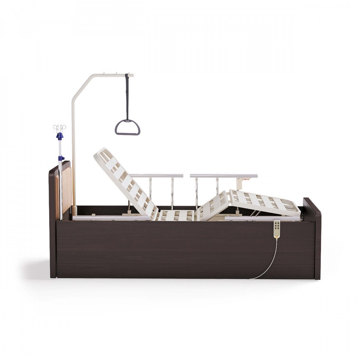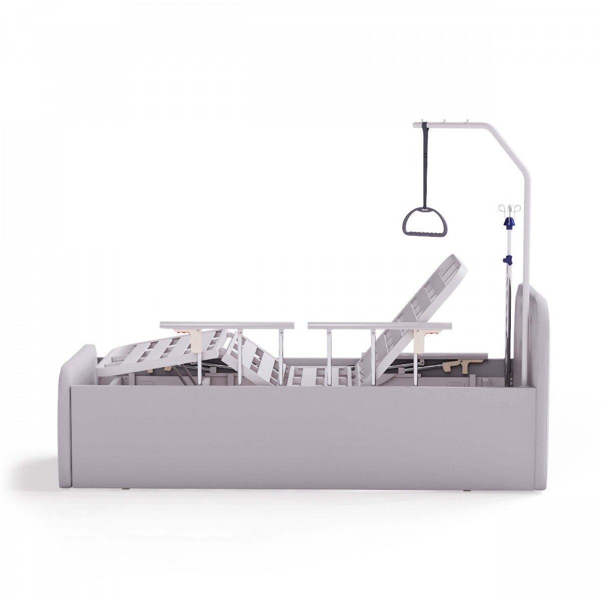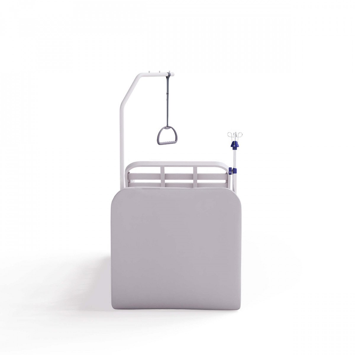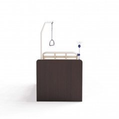В изголовье кровати есть четыре функциональных отверстия: два — для инфузионной стойки и два — для штанги с регулируемой ручкой, что облегчает процесс подтягивания или перемещения пользователя.