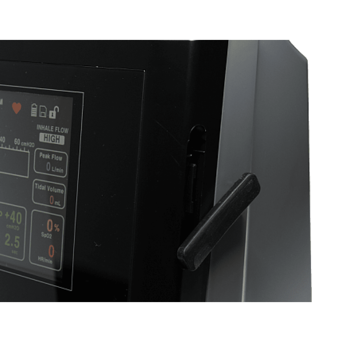- Большой цветной дисплей c отображением пиковой скорости кашля, дыхательного объёма, сатурации SpO2 и пульса при использовании с датчиком пульсоксиметрии