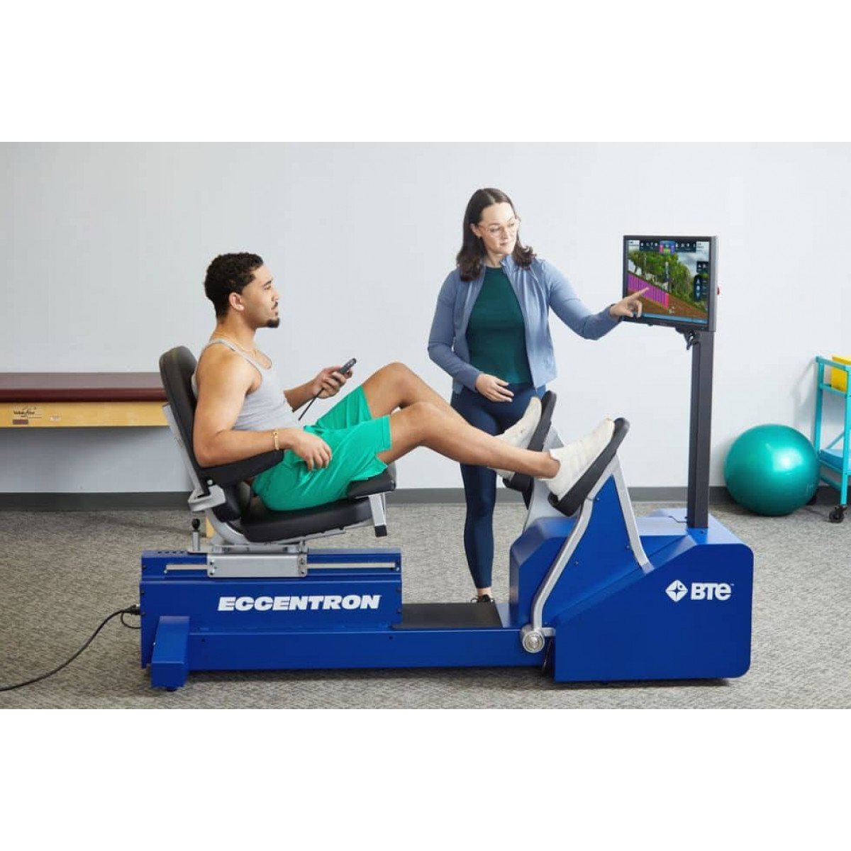 BTE Eccentron (БТИ Иксэнтрон) — это функциональный реабилитационный тренажёр, использующий принцип эксцентрического сокращения мышц. В этом процессе мышцы удлиняются под нагрузкой, эффективно растягивая опорно-двигательный аппарат. Эксцентрическая тренировка, основанная на отрицательном сопротивлении, является признанным методом восстановления в ортопедии и реабилитации.