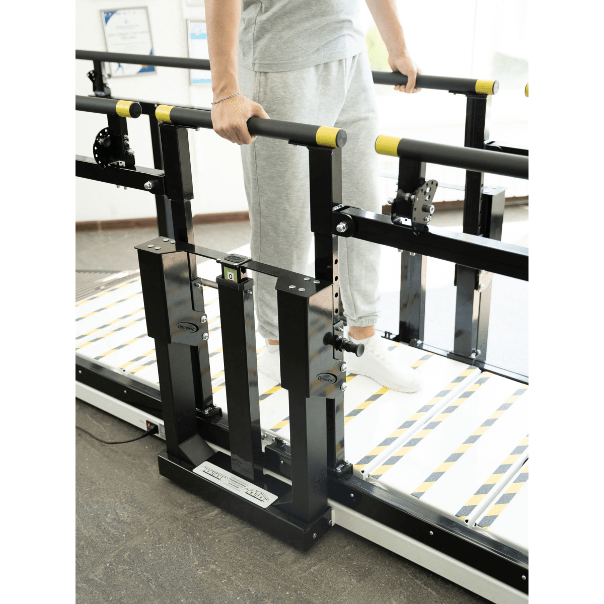 Поручни тренажёра имеют возможность механической регулировки по высоте и ширине. Ступени могут настраиваться по высоте при помощи пульта управления и электрических подъёмных колонн, что позволяет настройку в соответствии с тем уровнем, который пациент способен преодолеть.