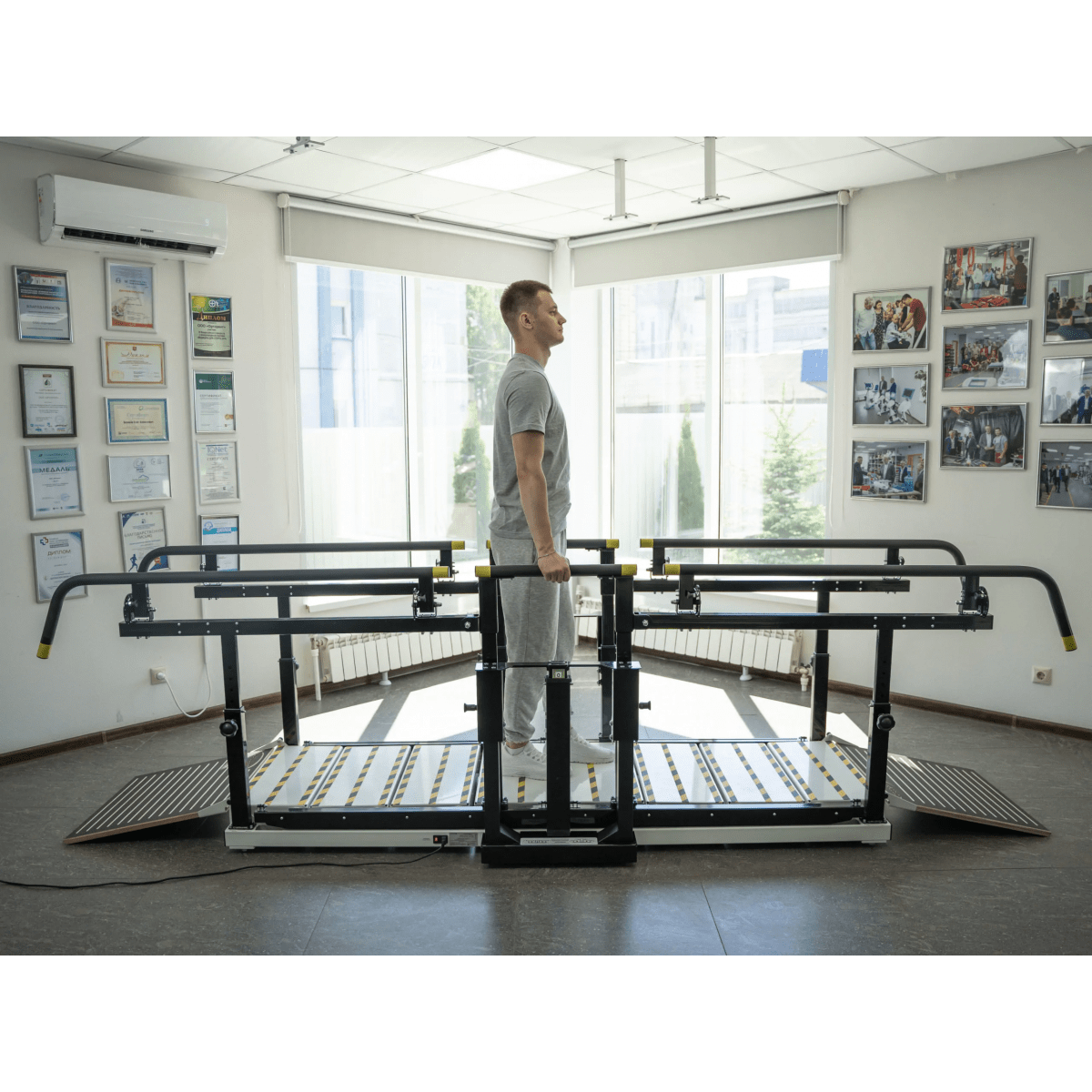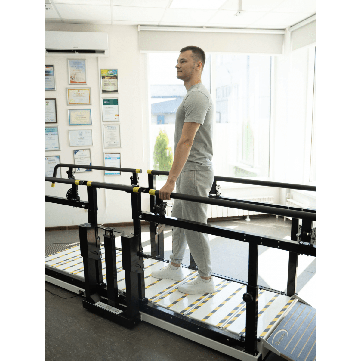 - Параллельные брусья. Модель также обладает функцией параллельных брусьев, которые используются в медицинской реабилитации для развития силы и координации.